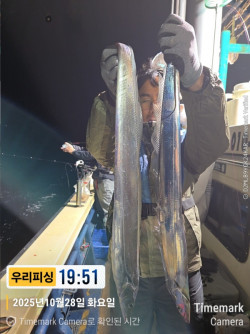 10월 31일(금) 갈치(텐빈. 텐야. 지깅) 초반에 대치들이 따박따박….. 10시 즘 되니 씨알도 잘고.. 입질도 뜸하고 해서 이동! 이동 후 새벽에 피딩이었는데.. 잔씨알이 많이 섞이네요 날씨가 춥습니다. 옷 따뜻하게 입고 오세요 3일(월). 4일(화) 정상 출조합니다. 예약 가능합니다. 출항: 오후 3시 30분 오세요 출조 문의: 010 7777 0910 11월 2일(일) 휴항 (기상악화) 11월 3일(월) 예약가능 11월 4일(화) 예약가능 11월 5일(수) 예약가능 11월 6일(목) 예약가능 미끼용 꽁치 배에서 판매합니다. 쿨러는 48리터까지만 허용입니다. 5인 이상 자리 우선권 드립니다. (단! 앞자리부터 가능합니다. ) 출조 문의 010 7777 0910 홈페이지 예약 현황 및 예약하기 http://woori.sunsang24.com/ 밴드검색 “우리피싱호”